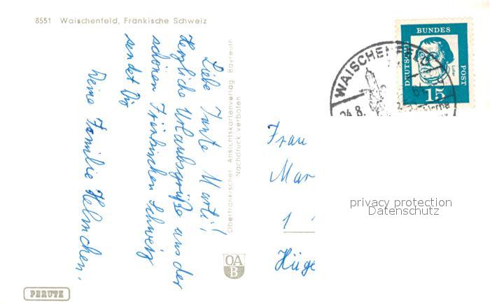43346253 alte Postkarte Waischenfeld Fliegeraufnahme postalisch gelaufen Erhaltung siehe scans [KathaD81] KatCode: 11110009472197