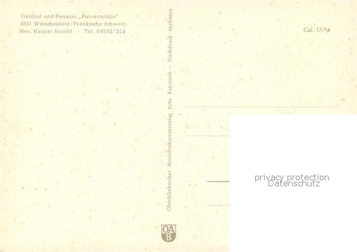 73228803 Waischenfeld Gasthof Pension Pulvermuehle postalisch nicht gelaufen Erhaltung siehe scans [FriedD77] KatCode: 11110009472197