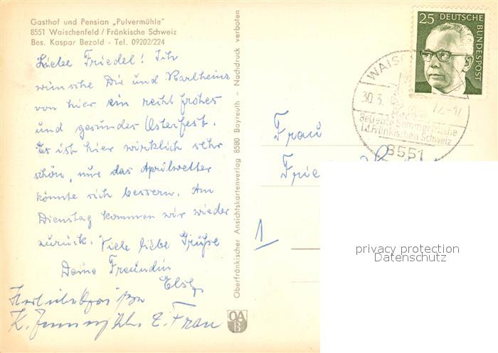 73054864 alte Postkarte Waischenfeld Gasthof Pension Pulvermuehle postalisch gelaufen Erhaltung siehe scans [WerneD78] KatCode: 11110009472197