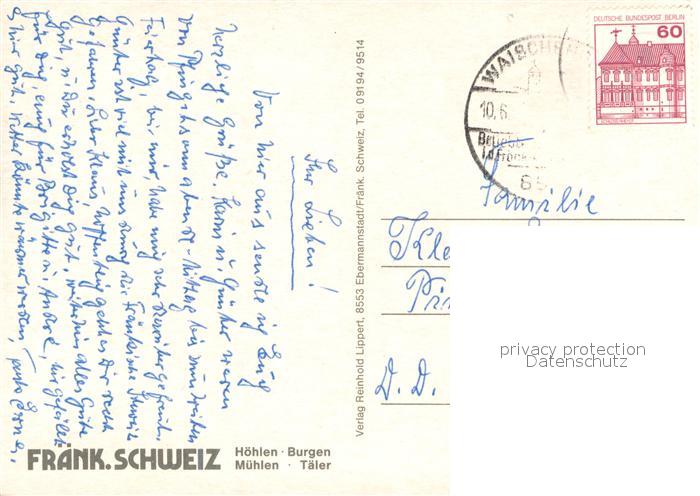 73737097 alte Postkarte Waischenfeld Panorama Burgturm Ortsansichten Freiterrasse Gasthof postalisch gelaufen Erhaltung siehe scans [FriedD77] KatCode: 11110009472197
