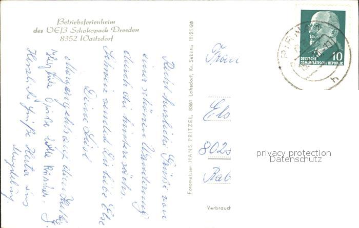 71983829 alte Postkarte Waitzdorf Betriebsferienheim VEB Schokopack Dresden postalisch gelaufen Erhaltung siehe scans KatCode: 11110014287160