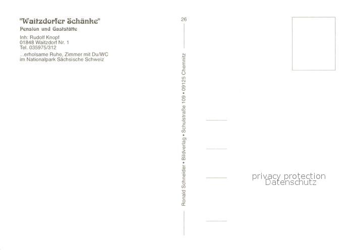 73722976 Waitzdorf Pension Gaststaette Waitzdorfer Schaenke postalisch nicht gelaufen Erhaltung siehe scans [WerneD78] KatCode: 11110014287160