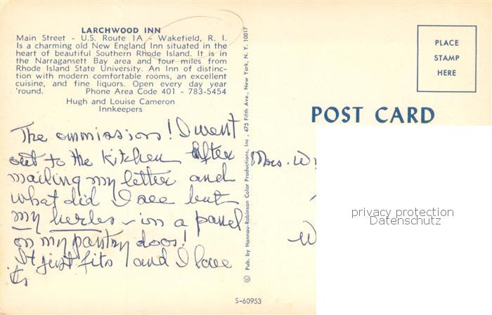 73764075 Wakefield Rhode Island Larchwood Inn postalisch nicht gelaufen Erhaltung siehe scans [WerneD78] KatCode: 14140420000000