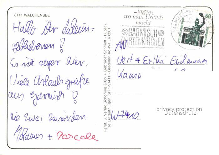 72797746 alte Postkarte Walchensee Alpen Fliegeraufnahme postalisch gelaufen Erhaltung siehe scans [FriedD77] KatCode: 11110009173133