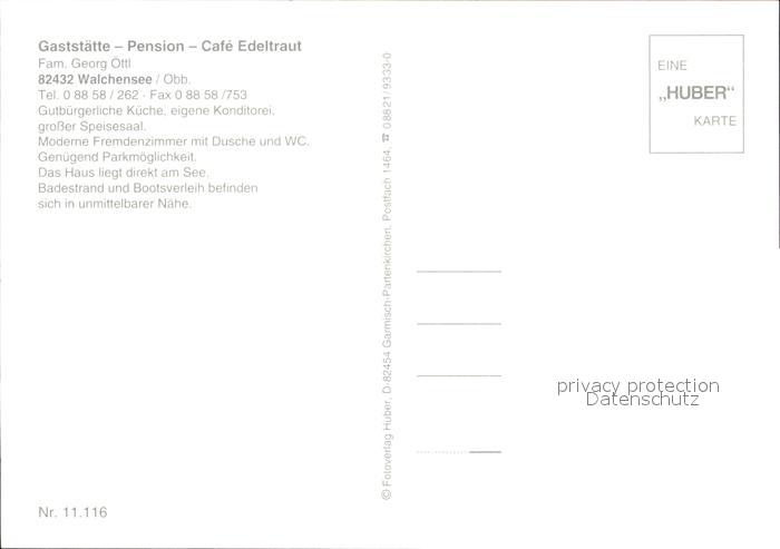 71989192 Walchensee Gaststaette Pension Cafe Edeltraut postalisch nicht gelaufen Erhaltung siehe scans KatCode: 11110009173133