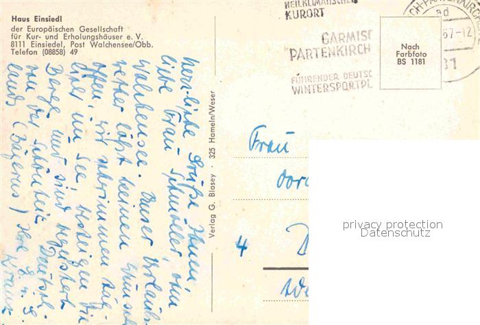 72795833 alte Postkarte Walchensee Hau Einsiedl postalisch gelaufen Erhaltung siehe scans [KathaD81] KatCode: 11110009173133