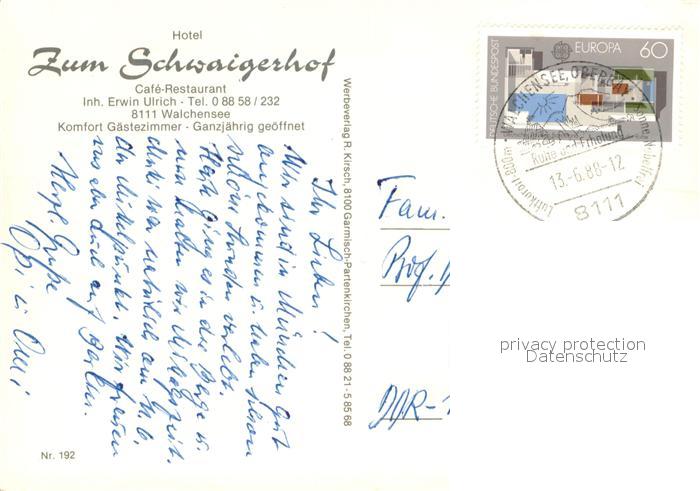 73652779 alte Postkarte Walchensee Hotel Zum Schwaigerhof Gastraum Eingang Liegewiese postalisch gelaufen Erhaltung siehe scans [WerneD78] KatCode: 11110009173133