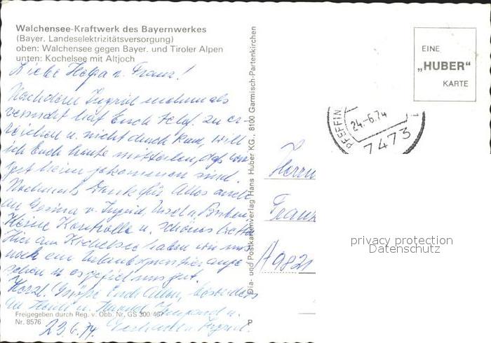 72376604 alte Postkarte Walchensee Kraftwerk Bayerische Alpen Tiroler Alpen Kochelsee Altjoch Fliegeraufnahme postalisch gelaufen Erhaltung siehe scans KatCode: 11110009173133