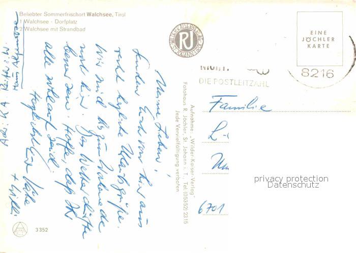 72714416 alte Postkarte Walchsee Tirol Dorfplatz und Strandbad postalisch gelaufen Erhaltung siehe scans [LiesaD40] KatCode: 11390335070529