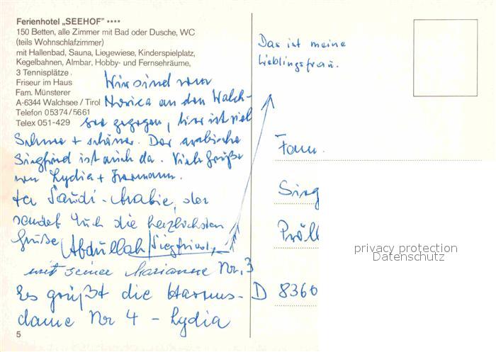 72716755 Walchsee Tirol Ferienhotel Seehof Alpen postalisch nicht gelaufen Erhaltung siehe scans [FriedD77] KatCode: 11390335070529