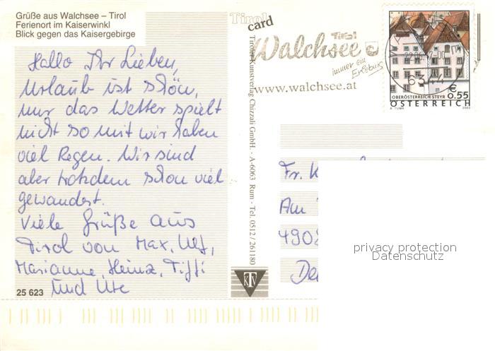 73644484 alte Postkarte Walchsee Tirol Ferienort im Kaiserwinkl Blick gegen Kaisergebirge postalisch gelaufen Erhaltung siehe scans [FriedD77] KatCode: 11390335070529
