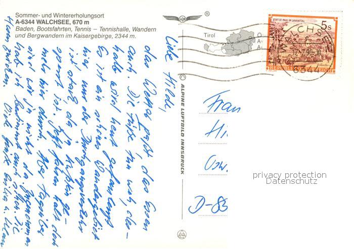 73049057 alte Postkarte Walchsee Tirol Fliegeraufnahme Kaisergebirge postalisch gelaufen Erhaltung siehe scans [KathaD81] KatCode: 11390335070529