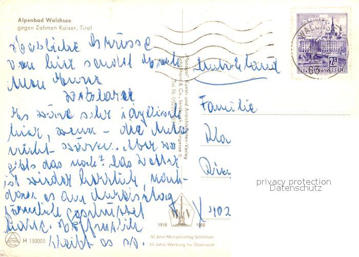 72946880 alte Postkarte Walchsee Tirol Fliegeraufnahme Zahmer Kaiser postalisch gelaufen Erhaltung siehe scans [KathaD81] KatCode: 11390335070529