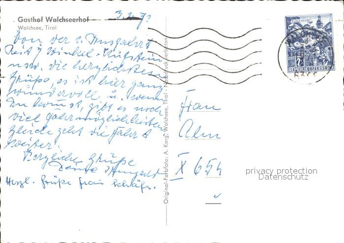 72451953 alte Postkarte Walchsee Tirol Gasthof Walchseehof postalisch gelaufen Erhaltung siehe scans KatCode: 11390335070529