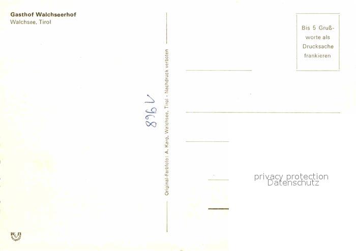 72694320 Walchsee Tirol Gasthof Walchseehof postalisch nicht gelaufen Erhaltung siehe scans [KathaD79] KatCode: 11390335070529