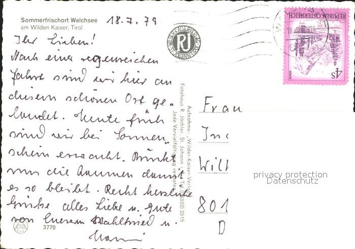 72360002 alte Postkarte Walchsee Tirol Panorama mit Wildem Kaiser postalisch gelaufen Erhaltung siehe scans KatCode: 11390335070529