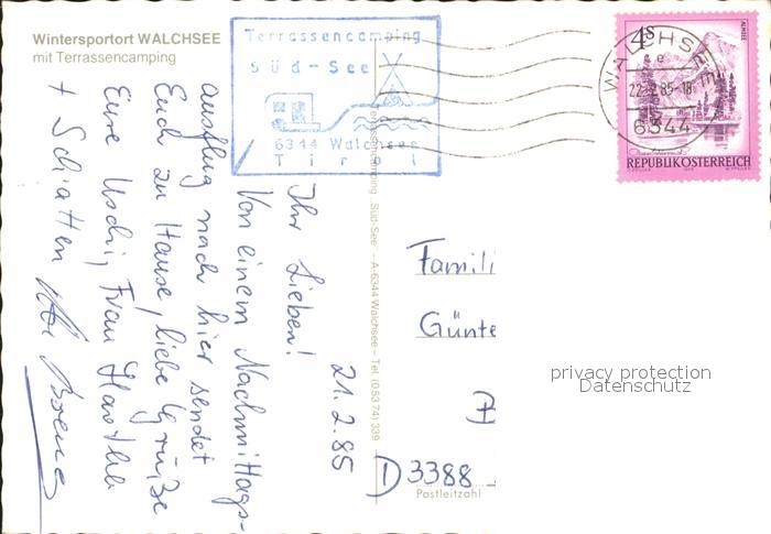 72277365 alte Postkarte Walchsee Tirol Terrassencamping Ski postalisch gelaufen Erhaltung siehe scans KatCode: 11390335070529