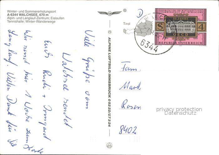 72465576 alte Postkarte Walchsee Tirol Winterpanorama Alpen Fliegeraufnahme postalisch gelaufen Erhaltung siehe scans KatCode: 11390335070529