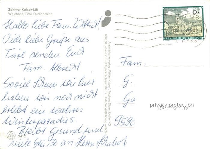 72064154 alte Postkarte Walchsee Tirol Zahmer Kaiser Lift Durchholzen postalisch gelaufen Erhaltung siehe scans KatCode: 11390335070529