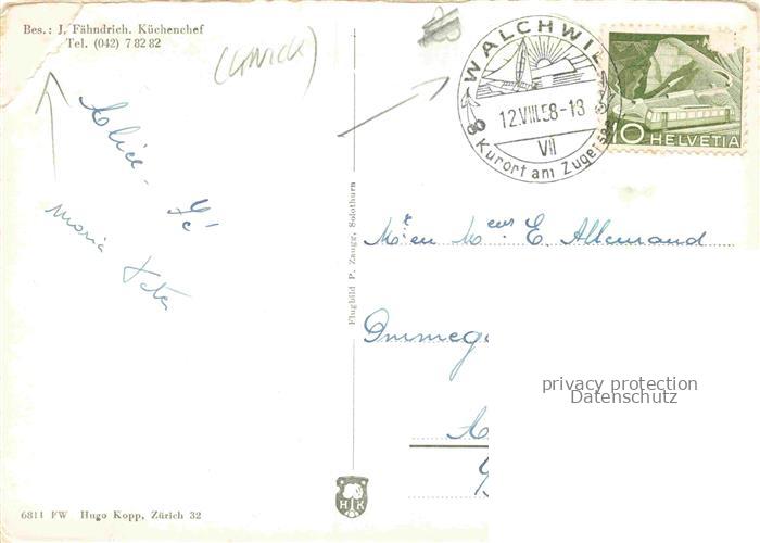 14109251 Walchwil Zug ZG Seehotel Lothenbach am Zugersee postalisch gelaufen Fliegeraufnahme Erhaltung siehe scans [FriedD77] Fliegeraufnahme alte Postkarte Frie Katcode 11470250855026