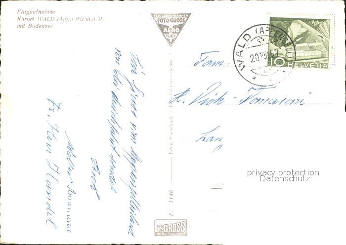 11628223 alte Postkarte Wald AR Vorderland Fliegeraufnahme mit Bodensee postalisch gelaufen Erhaltung siehe scans KatCode: 11470020070578
