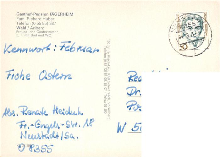 73878428 alte Postkarte Wald Arlberg Gasthof Pension Jaegerheim postalisch gelaufen Erhaltung siehe scans [WerneD78] KatCode: 11390341080108