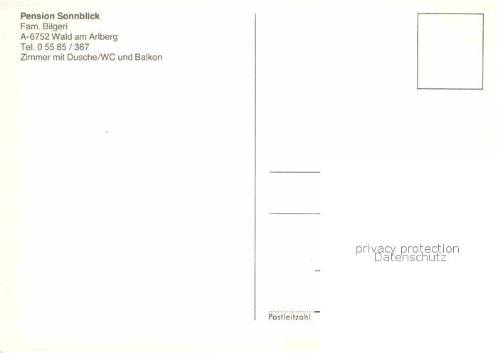 72904459 Wald Arlberg Pension Sonnblick postalisch nicht gelaufen Erhaltung siehe scans [LiesaD40] KatCode: 11390341080108