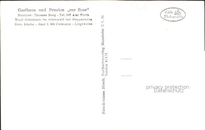31716889 Wald-Erlenbach Gasthaus Pension zur Rose postalisch nicht gelaufen KatCode: 11110006431011