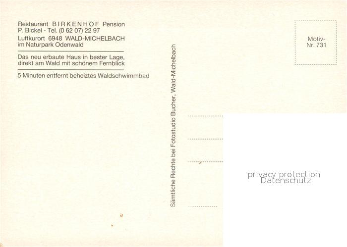 73683768 Wald-Michelbach Hotel Birkenhof postalisch nicht gelaufen Erhaltung siehe scans [LiesaD40] KatCode: 11110006431021