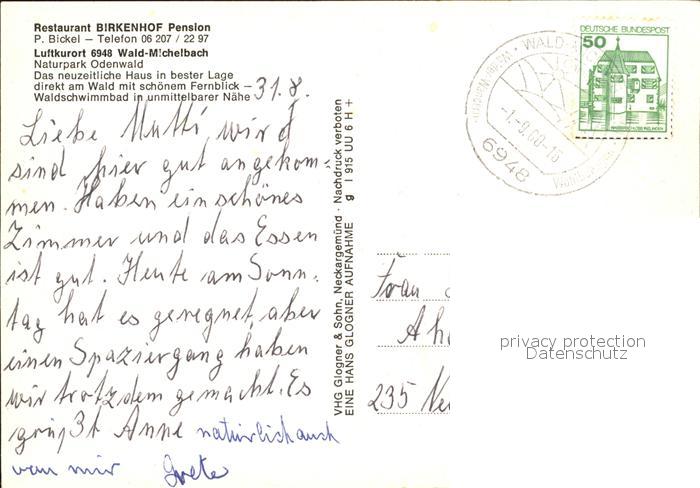 alte Postkarte Wald-Michelbach Restaurant Birkenhof postalisch gelaufen Erhaltung siehe scans