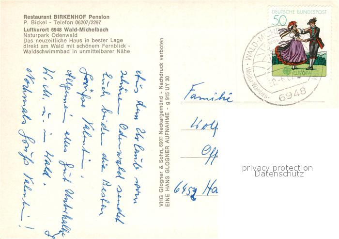73055864 alte Postkarte Wald-Michelbach Restaurant Birkenhof Pension postalisch gelaufen Erhaltung siehe scans [WerneD78] KatCode: 11110006431021