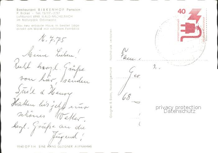 72100270 alte Postkarte Wald-Michelbach Restaurant Birkenhof Pension postalisch gelaufen Erhaltung siehe scans KatCode: 11110006431021