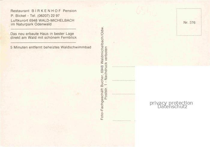74048100 Wald-Michelbach Waldmichelbach Hessen Restaurant Pension Birkenhof Gastraeume Panorama postalisch nicht gelaufen Erhaltung siehe scans [FriedD77] KatCode: 11110006431021