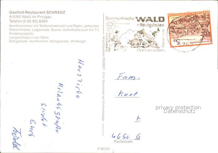 71908667 alte Postkarte Wald Pinzgau Gasthof Restaurant Schranz postalisch gelaufen Erhaltung siehe scans KatCode: 11390322050626