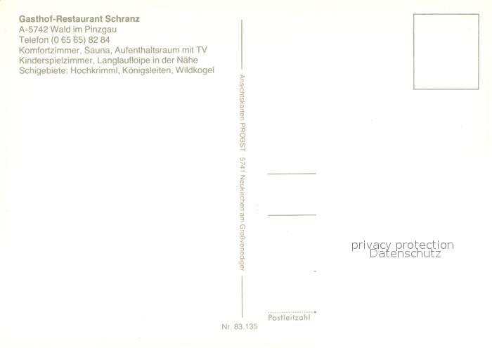 73614080 Wald Pinzgau Gasthof Restaurant Schranz postalisch nicht gelaufen Erhaltung siehe scans [WerneD78] KatCode: 11390322050626