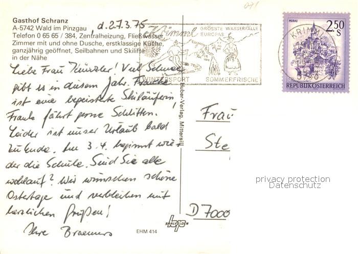 73588085 alte Postkarte Wald Pinzgau Gasthof Schranz postalisch gelaufen Erhaltung siehe scans [PaolaD17] KatCode: 11390322050626