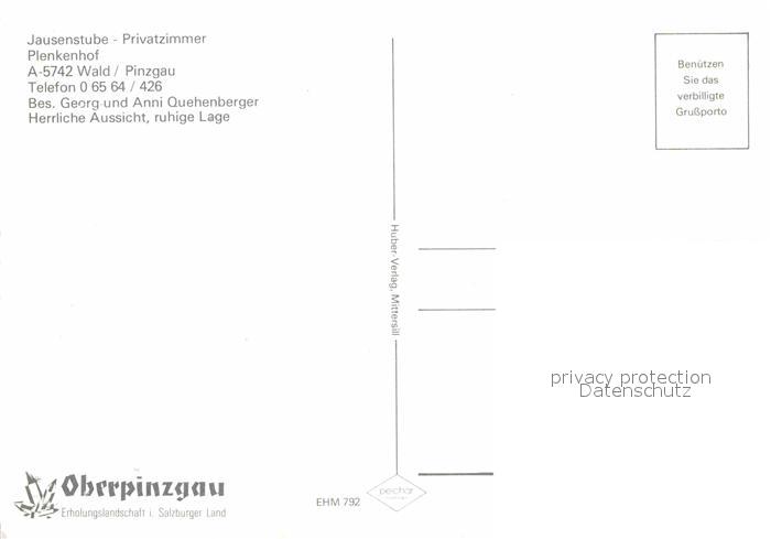 72681311 Wald Pinzgau Jausenstube Plenkenhof Gaststube postalisch nicht gelaufen Erhaltung siehe scans [WerneD78] KatCode: 11390322050626