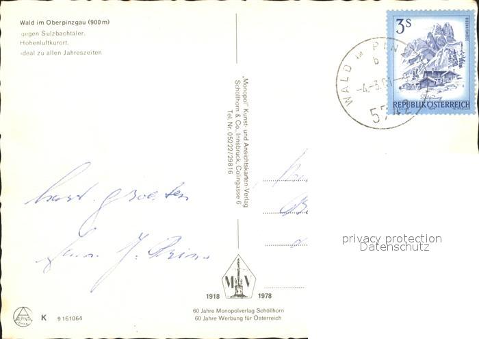 72094829 alte Postkarte Wald Pinzgau mit Sulzbachtaler postalisch gelaufen Erhaltung siehe scans KatCode: 11390322050626