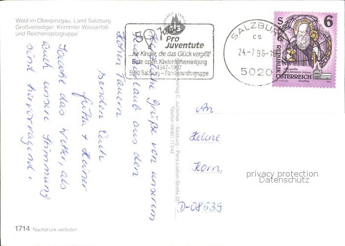 72400195 alte Postkarte Wald Pinzgau Nationalpark Hohe Tauern Grossvenediger Krimmler Wasserfall postalisch gelaufen Erhaltung siehe scans KatCode: 11390322050626