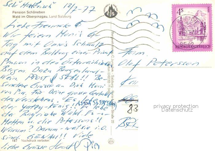 72619622 alte Postkarte Wald Pinzgau Pension Schoeneben Alpenblick postalisch gelaufen Erhaltung siehe scans [FriedD77] KatCode: 11390322050626