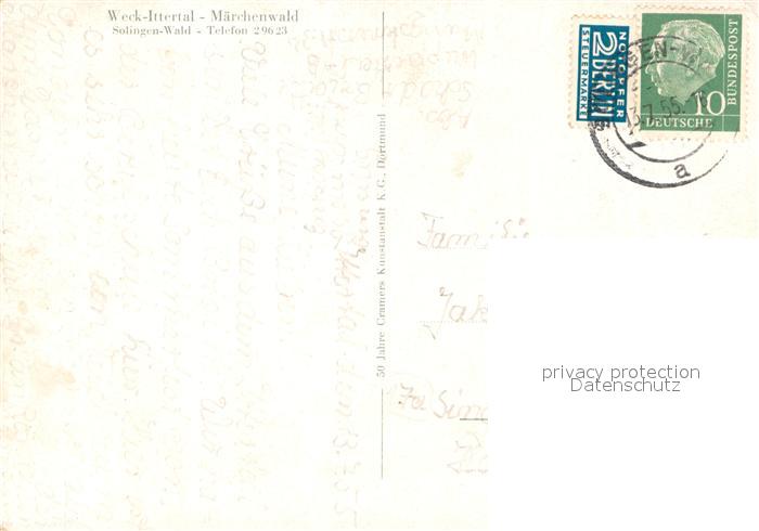 73712433 alte Postkarte Wald Solingen Maerchenwald im Ittertal postalisch gelaufen Fliegeraufnahme Erhaltung siehe scans [FriedD77] KatCode: 11110005122000