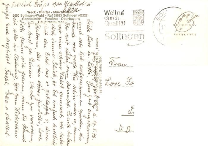 73943283 alte Postkarte Wald Solingen Maerchenwald Ittertal Gondelteich fontaene Restaurant postalisch gelaufen Erhaltung siehe scans [WerneD78] KatCode: 11110005122000