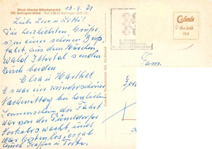 73943321 alte Postkarte Wald Solingen Weck Ittertal Maerchenwald Gondelteich Freiterrasse postalisch gelaufen Erhaltung siehe scans [WerneD78] KatCode: 11110005122000