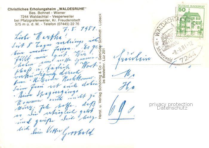 73835955 alte Postkarte Waldachtal Erholungsheim Waldesruhe Gaestehaus Vesperweiler Speisesaal Aufenthaltsraum postalisch gelaufen Erhaltung siehe scans [WerneD78] KatCode: 11110008237074