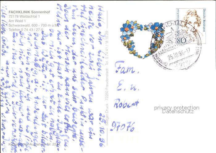 72291228 alte Postkarte Waldachtal Fachklinik Sonnenhof postalisch gelaufen Erhaltung siehe scans KatCode: 11110008237074