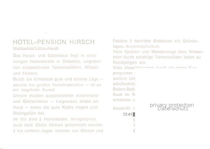73359876 Waldachtal Hotel Pension Hirsch postalisch nicht gelaufen Werbekarte (keine Postkarte) Erhaltung siehe scans [FriedD77] KatCode: 11110008237074