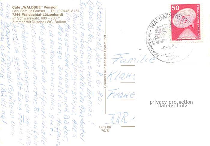 74095550 alte Postkarte Waldachtal Luetzenhardt Freudenstadt BW Cafe Waldsee Pension See Golf Kirche postalisch gelaufen Erhaltung siehe scans [IrynaD87] KatCode: 11110008237074