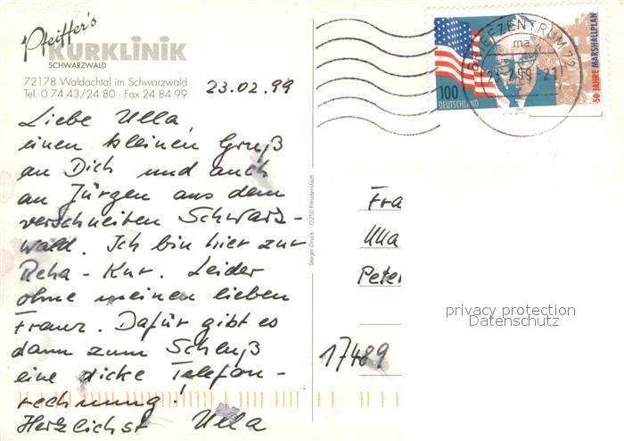 73644285 alte Postkarte Waldachtal Pfeiffer’s Kurhotel Restaurant Hallenbad postalisch gelaufen Erhaltung siehe scans [FriedD77] KatCode: 11110008237074