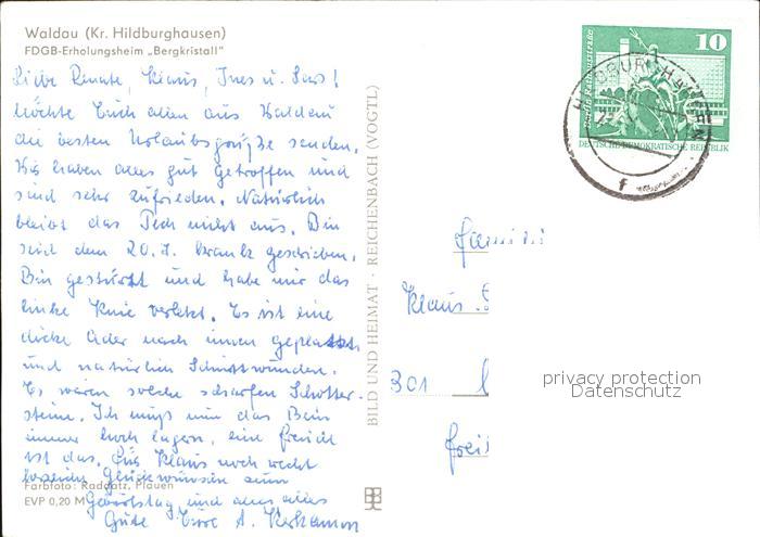 72496720 alte Postkarte Waldau Hildburghausen FDGB Erholungsheim Bergkristall postalisch gelaufen Erhaltung siehe scans KatCode: 11110016069024