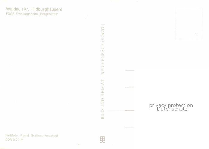 72820982 Waldau Hildburghausen FDGB Erholungsheim Bergkristall postalisch nicht gelaufen Erhaltung siehe scans [FriedD77] KatCode: 11110016069024
